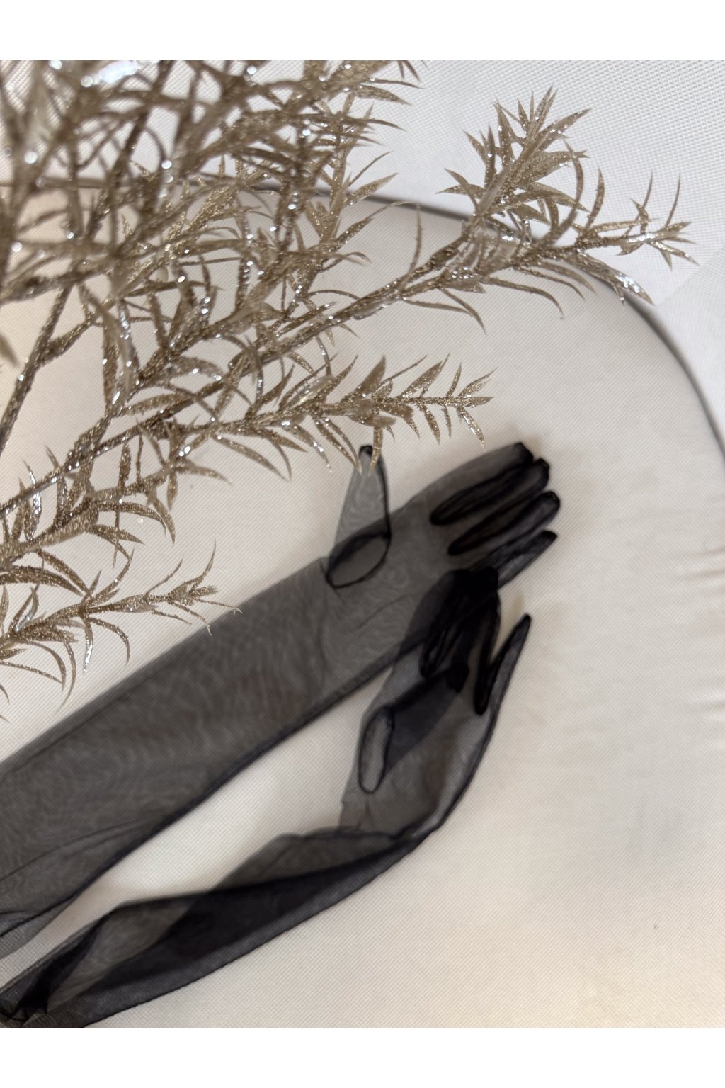 Rukavičky z jemného průsvitného tylu jsou lehké jako vánek, ale přesto působí výrazně a elegantně.
