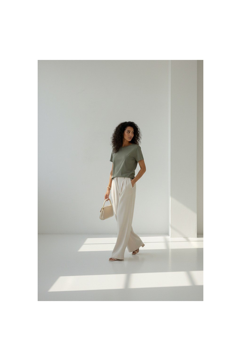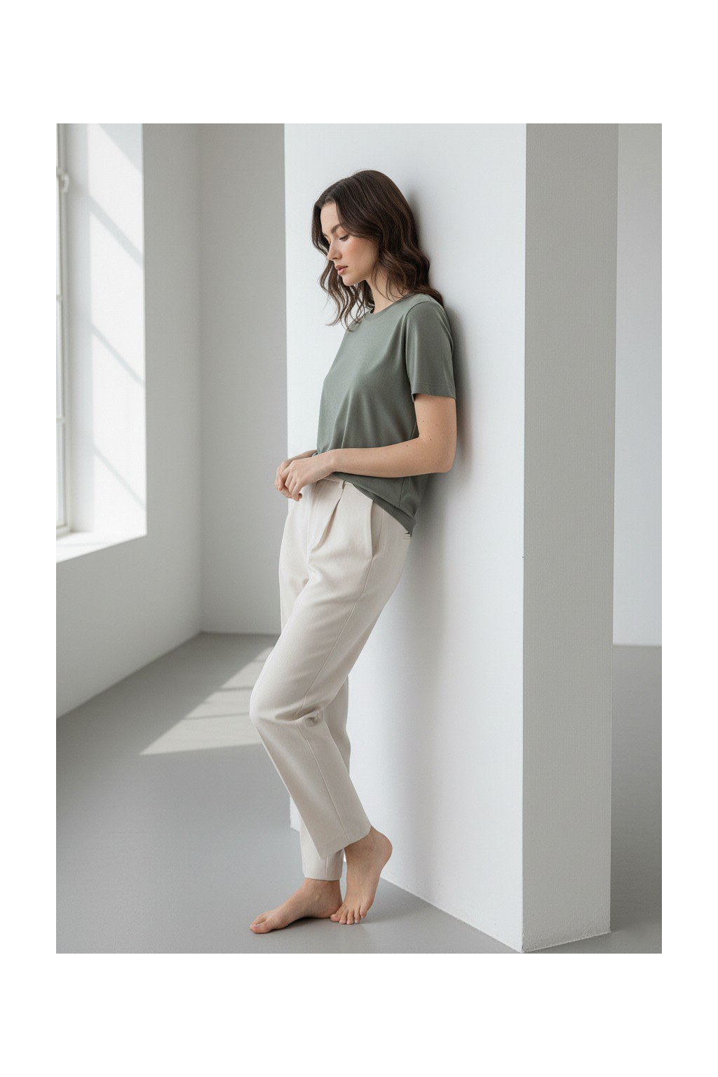 Díky vysoké gramáži materiál krásně drží siluetu, ale zůstává měkce splývavý a přirozeně se přizpůsobí pohybu. Skvěle padne na každou postavu – bez pocitu omezení.
