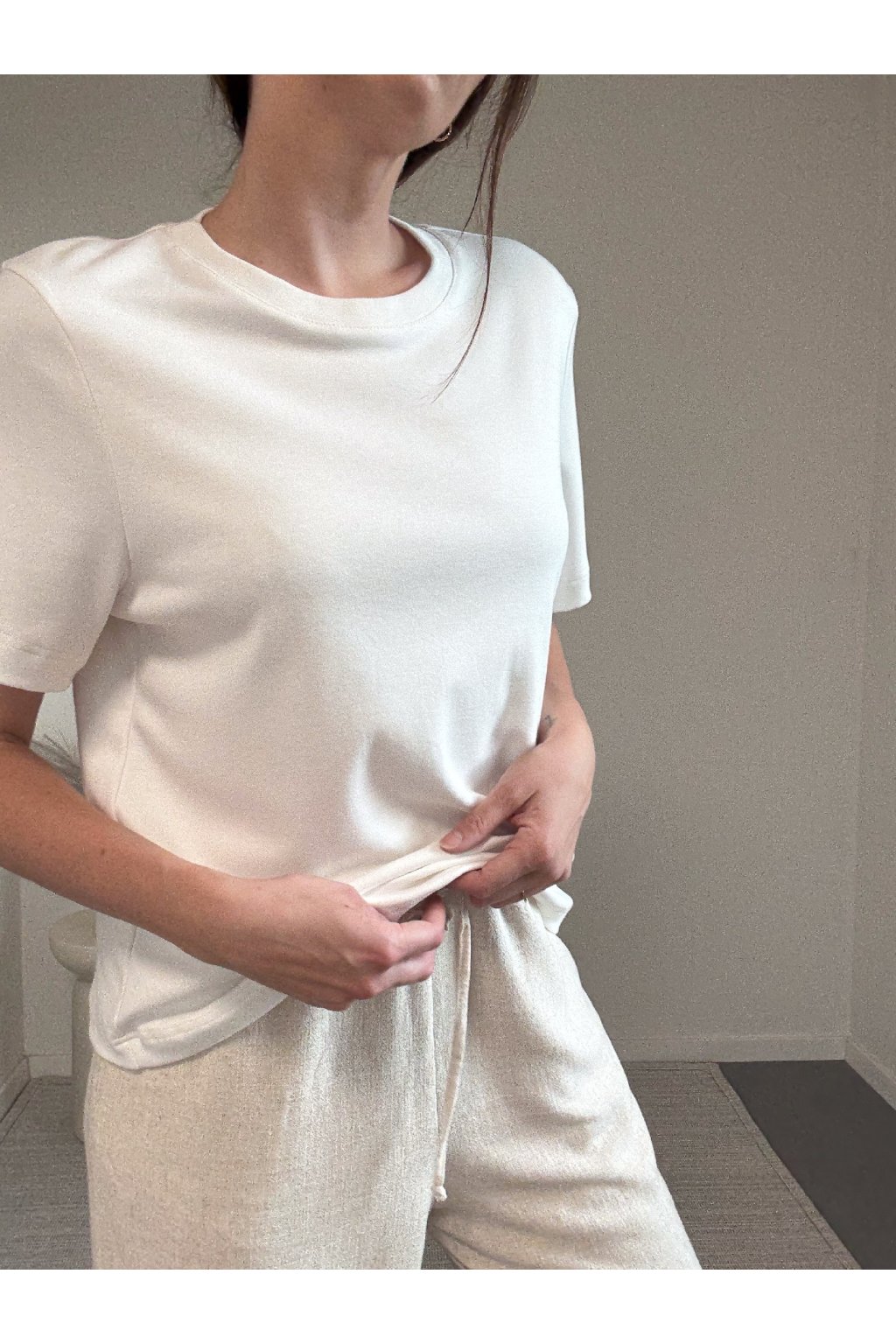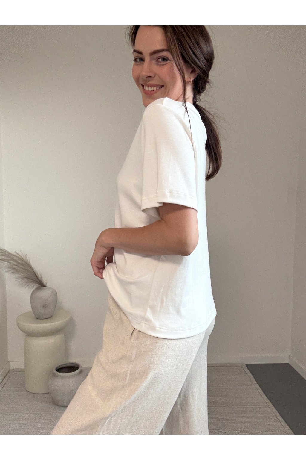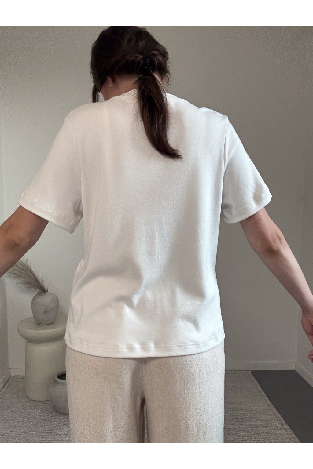 Díky vysoké gramáži materiál krásně drží siluetu, ale zůstává měkce splývavý a přirozeně se přizpůsobí pohybu. Skvěle padne na každou postavu – bez pocitu omezení.